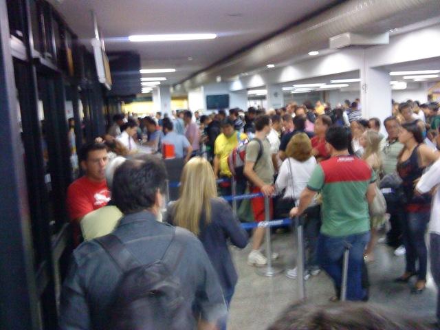 Assim como eu, várias pessoas alí não estavam viajando a passeio. Estavam viajando a trabalho. Passando por aquela bagunça e o pior, pagando 40% de imposto por mês, maistaxa de embarque. Legal né?